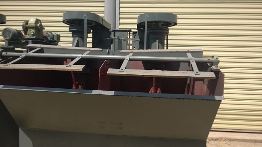 煤用浮選機(jī)是一種機(jī)械攪拌式浮選機(jī),浮選過程中,事先根據(jù)煤炭資源的特性選擇浮選藥劑,通過機(jī)械攪拌產(chǎn)生大量的負(fù)壓,吸入空氣,產(chǎn)生大量的氣泡,精礦附著在氣泡上,浮到礦漿表面上被刮板刮出,圍巖、泥漿等雜物留在礦漿底部從排料口排出,不斷循環(huán),完成浮選要求。